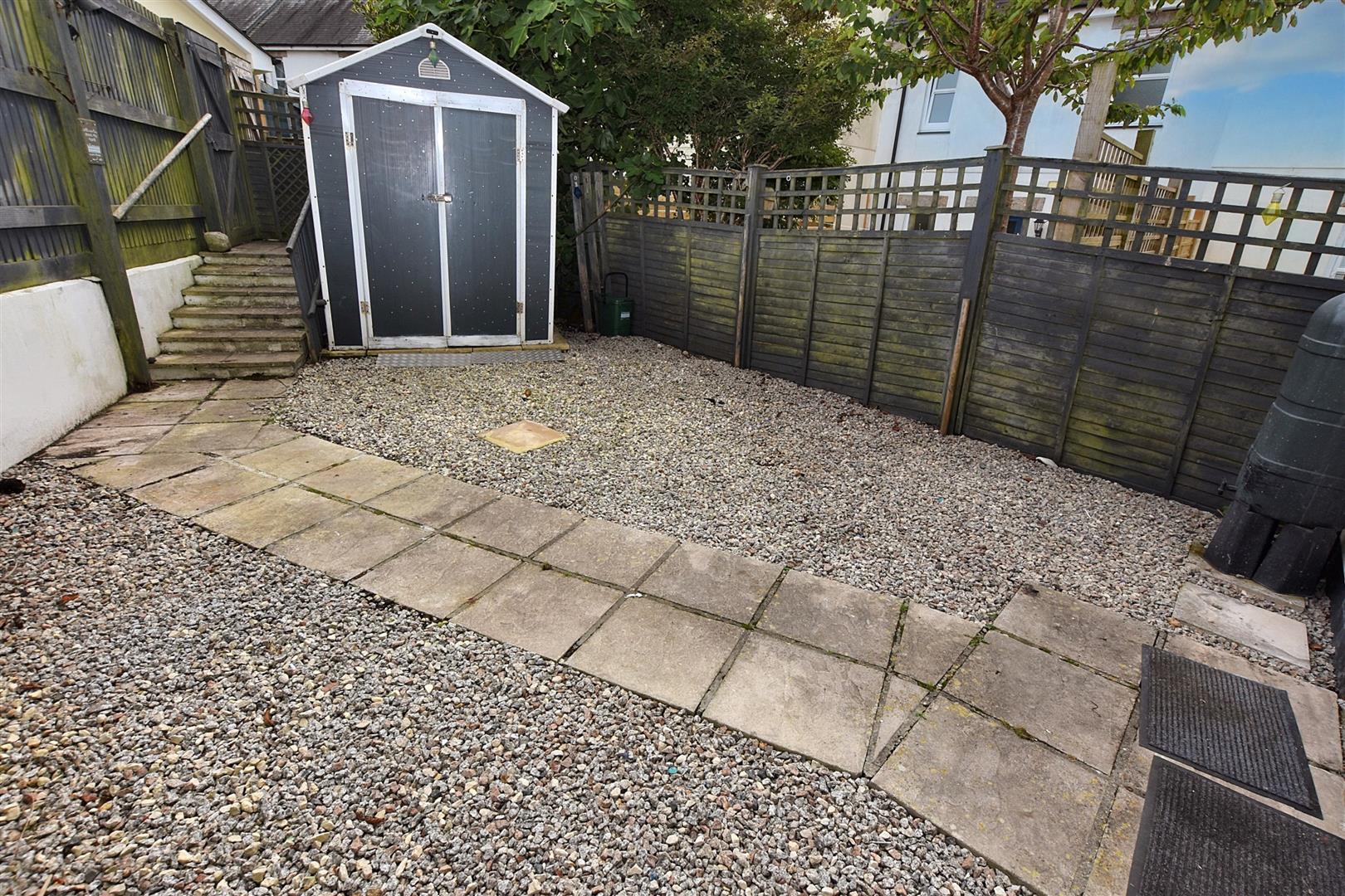 OUTSIDETo the front there is a small gravel border, mature plants and an external light. To the rear there is a parking space for one vehicle. Patio doors from the lounge lead out to a very low maintenance rear garden with a slabbed pathway bordering two gravelled areas. There is an external tap, an external light and a sun canopy. Steps lead up to a rear pedestrian gate.