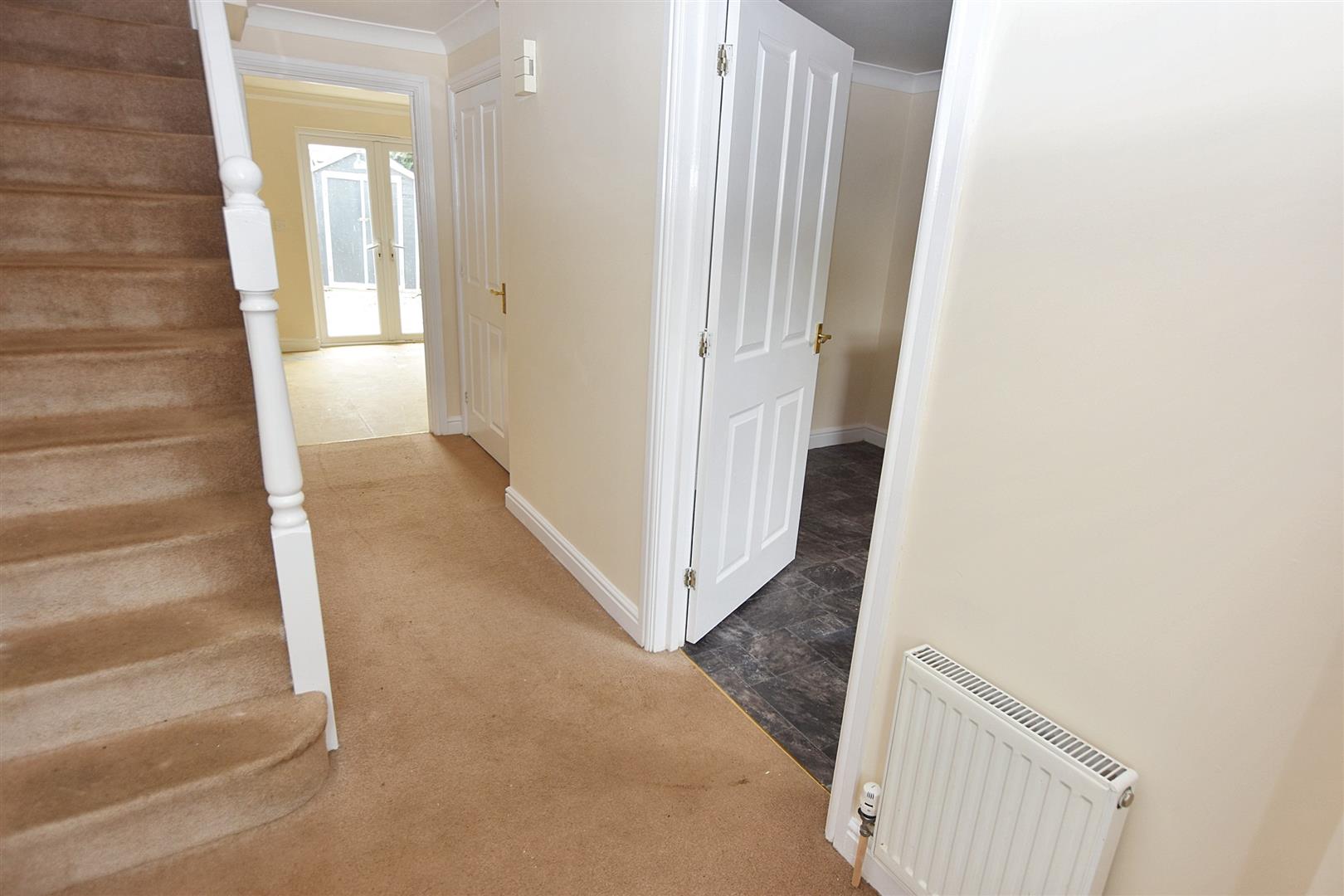 Stairs to the first floor, a mains smoke alarm and a radiator. Door to understairs storage cupboard.