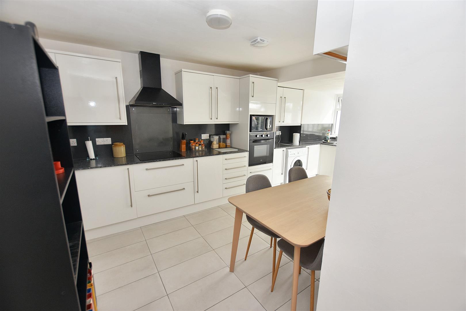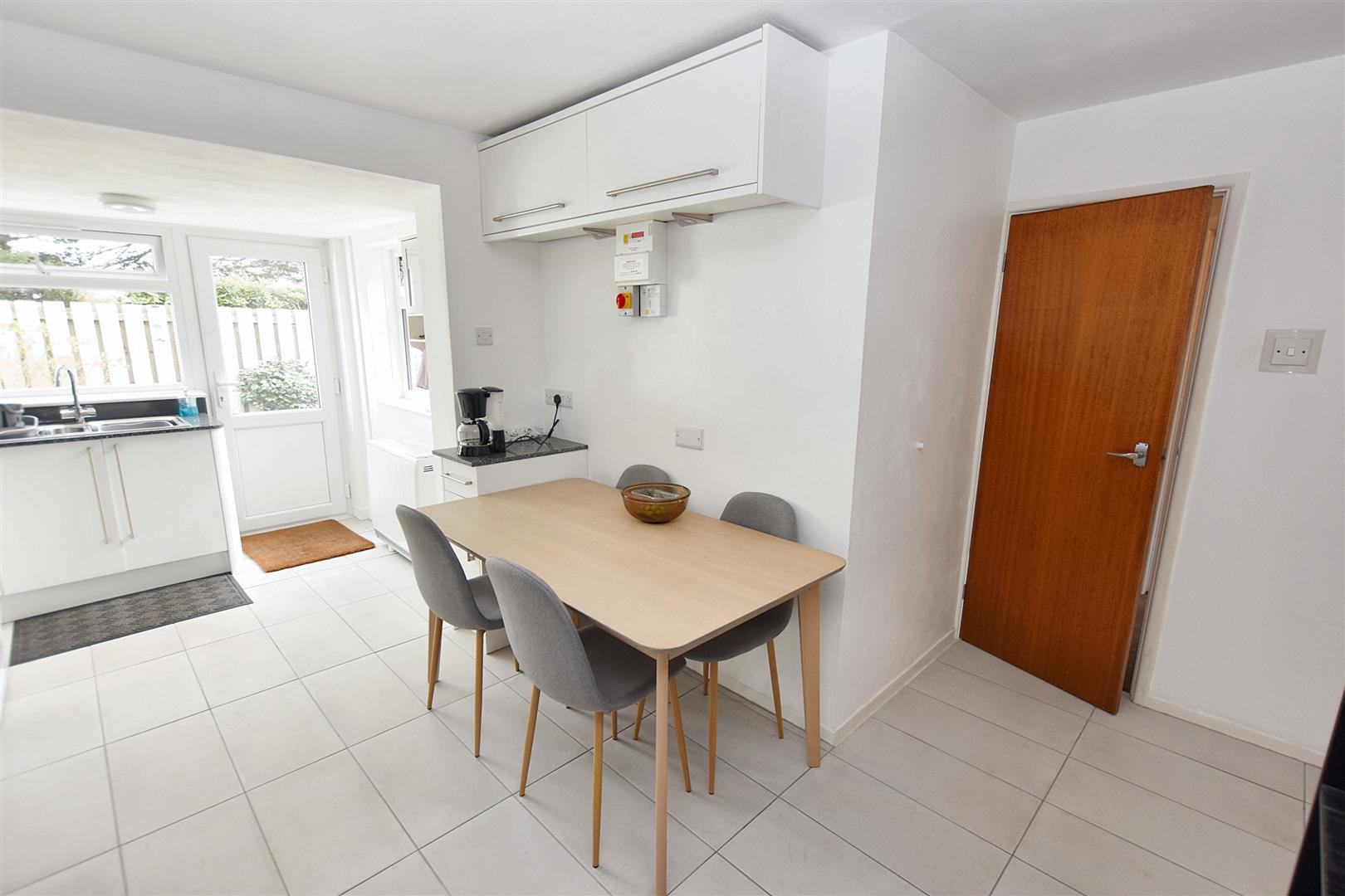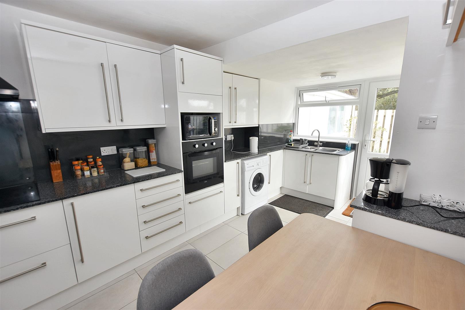 KITCHEN/DINERFitted with a range of work surfaces having cupboards and drawers beneath, a one and a half bowl stainless steel sink unit, space for white goods and splash backs. Complementary eye level cupboards with down lighters. Fitted oven, hob and a cooker hood. Extractor fan, an electric heater, door and windows to the rear. Airing cupboard housing hot water cylinder with fitted timer.