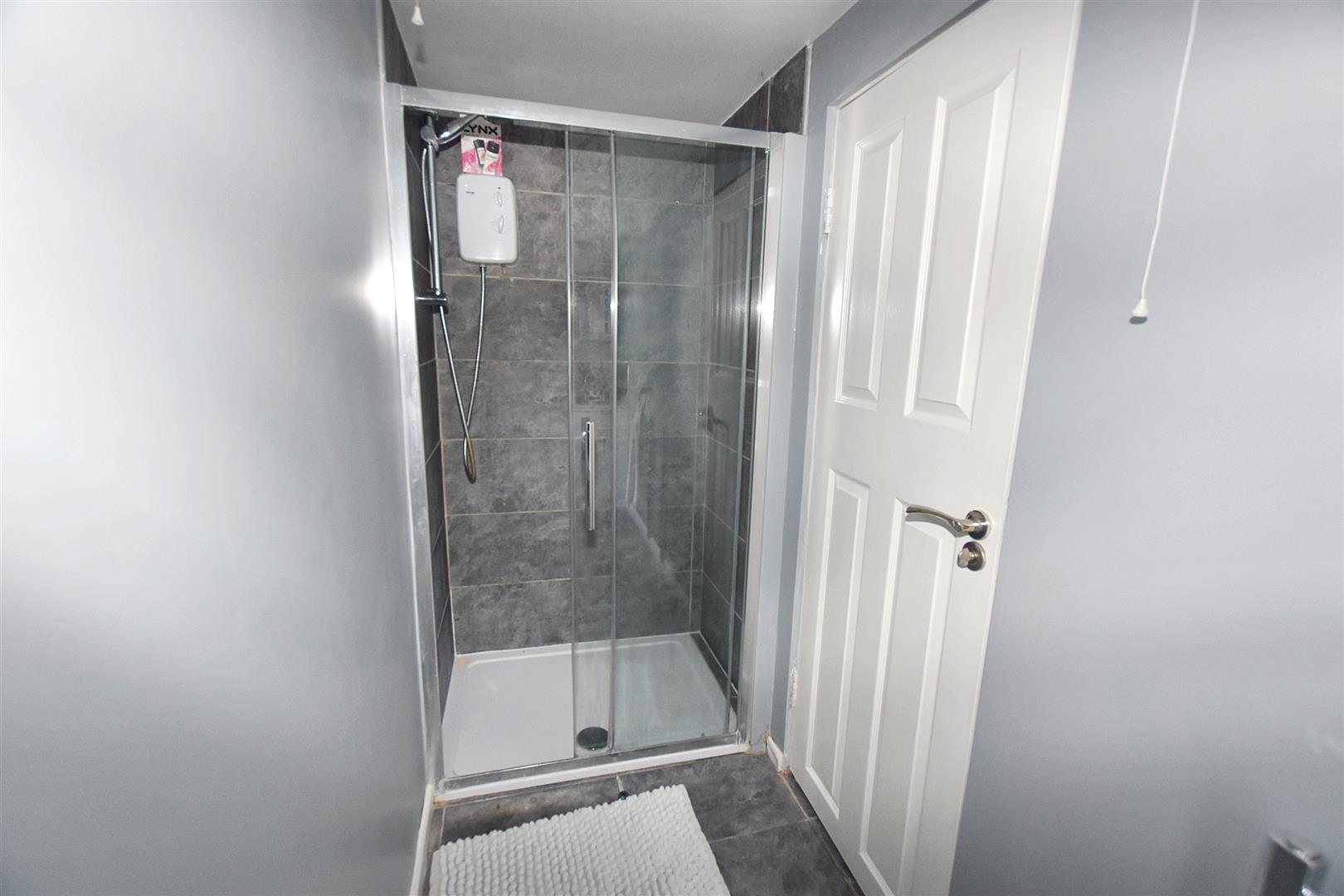 SHOWER ROOMLow level wc and wash hand basin in a built-in vanity unit with a tiled splash back. Walk-in shower with a Triton Paluso electric shower, wall mounted towel radiator and a upvc double glazed obscure window to the side. Manrose extractor fan.