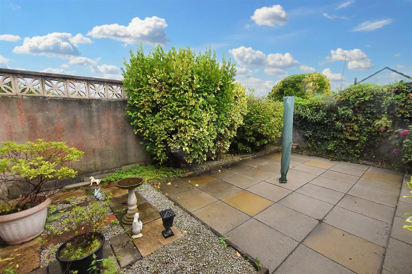 OUTSIDETo the front there is an enclosed laid to lawn area with a hedging border. A side driveway with a gravel border provides parking for two vehicles and leads to a SINGLE GARAGE 2.42m x 5.01m (7'11 x 16'5) with an electric up and over door, lighting and power, work bench and shelves above to the rear. External light and a pathway to a gate leading to the rear. The rear garden is very low maintenance being mainly slabbed with raised gravel borders of mature shrubs and plants. Steps lead up to the aforementioned patio doors leading back into the lounge/diner.